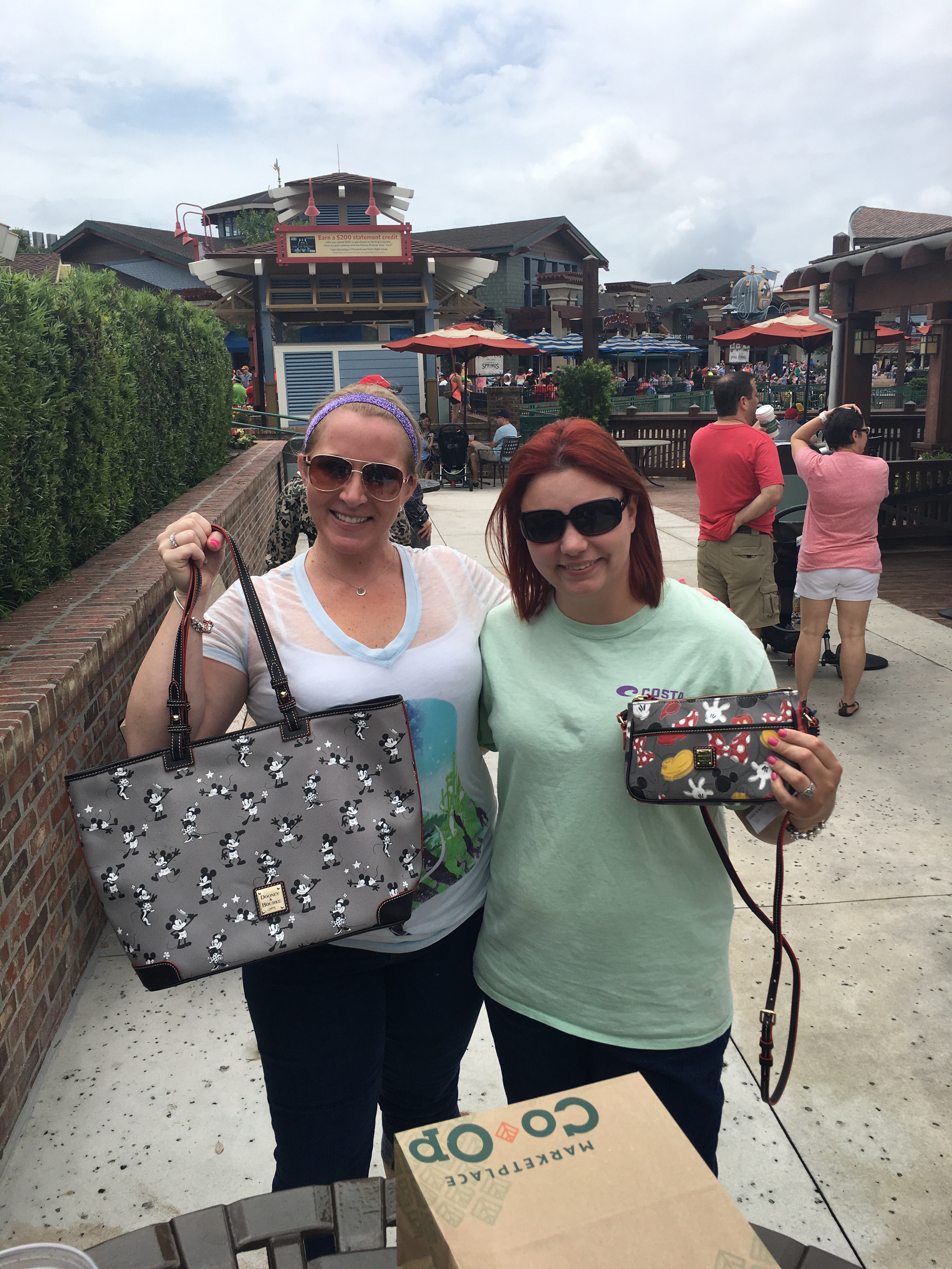 Like with all things good, Dooney prints only stick around for a certain amount of time and then they retire…like the Vera Bradley’s as well. This print (Mickey and Minnie Mouse retro-gray) is currently offered at the Walt Disney World Resort and Disneystore.com. More specifically I could only find it at the Matket Place Co-Op at Disney Springs right next to the new TAG shop.